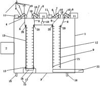 本实用新型公开了一种制作蛋黄酥用的提升塔,它包括机架、进塔机构、驱动装置、两个传送机构和控制箱,所述机架包括底板和顶板,在底板和顶板之间设置4根支撑脚,所述四条支撑脚垂直设置于底板相对的两端;所述两个传送机构相对设置于底板与顶板之间,所述两个传送机构分别包括相对设置于底板和顶板之间的同步带、两个第一从动轮、两个第二从动轮、两个第一转轴,所述两个第一从动轮分别设置于第一转轴的两端,所述同步带绕设于同一侧的第一从动轮和第二从动轮上,所述同步带上设置有若干支撑块,本实用新型增加了储存容量的同时亦有利于节省空间,而且本实用新型结构简单,成本较低。