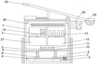 本发明公开了一种低压配电无功补偿柜,包括柜体、内腔、限位板、驱动腔和遮雨板,所述柜体内部设置内腔,所述柜体下方滑动连接限位板,所述柜体上表面活动设置遮雨板;所述内腔顶部设置主控制面板和电容箱,所述限位板内表面右侧固定焊接驱动电机,所述驱动电机为正反转电机,所述驱动电机左侧输出轴固定焊接第一转轴,所述第一转轴远离所述驱动电机一端转动连接所述限位板侧壁;本发明设计合理能够改变所述柜体的高度,有效的避免雨水的侵袭;进而延长了所述柜体的使用年限;且能够实现对补偿电路的控制,确保补偿电路的工作在正常范围内工作,使补偿电路更加准确的实现对电力的调整,保证电力用电安全。