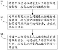 本发明公开了一种三维空间信息采集分析处理的方法,包括以下步骤:步骤S1:启动三维空间扫描装置对三维空间进行扫描,采集三维空间图像数据;步骤S2:对所采集的三维空间图像数据进行建模处理,将三维空间图像数据按照扫描的时间顺序进行编码排序,并生成二维图像集;步骤S3:对每个二维图像集在三维坐标系内进行映射重合,构建接近三维空间内部形态,从而实现对室内三维空间大小的重建;并公开了三维空间信息采集分析处理装置,包括三维空间扫描装置、图像获取模块、图像处理模块和图像转换模块。本发明通过将二维图像集的每个点云信息通过映射得到的三维空间信息,从而快速地对室内空间的三维型进行重建。