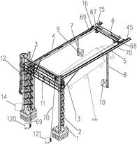 本发明公开了一种基于龙门架的车辆车厢体积测量机构,包括电气箱控制系统、龙门架、两条平行设置的第一槽型直线导轨和第二槽型直线导轨,第一槽型直线导轨和第二槽型直线导轨的一端分别安装在龙门架上,所述第一槽型直线导轨和第二槽型直线导轨的另一端分别悬空放置,所述龙门架包括基座、横梁和两个相对设立的竖架,两个相对设立的竖架顶端固定所述横梁,两个相对设立的竖架底端固定在所述基座上,在所述第一槽型直线导轨和第二槽型直线导轨之间跨接有行走机构,在所述行走机构的下方安装第一数据采集装置,所述第一数据采集装置通过数据线与安装的电气箱控制系统进行通信连接。本发明能快速测量车辆车厢内货物的体积,测量的误差小,控制方便。