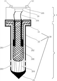 本实用新型公开了一种土壤水分检测装置,包括检测部分和探测部分,所述检测部分与探测部分的输出端密封紧贴连接,所述探测部分包括探测壳体,该探测壳体的上端为T型头部,中间部分为杆部,下端为尖端部,在探测壳体的杆部和T型头部内填充有屏蔽绝缘层,在杆部的屏蔽绝缘层内包裹有竖直设置的阳极电极和阴极电极,所述阳极电极的输出和阴极电极的输出端分别与所述检测部分通过光纤导线连接。本实用新型能够对土壤水分快速检测,并动态实时地反映土壤的变化,且其结构简单,操作使用方便。