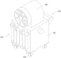 本实用新型公开了一种农业器械清洗装置,涉及农业器械技术领域。本实用新型包括水箱、推拉装置、风干机、喷水装置和旋转脚轮,水箱后方上部固定连接有推拉装置,水箱上方固定有风干机,水箱前方固定连接有喷水装置,水箱下方四角固定连接有四个旋转脚轮。本实用新型通过设置风干机、直驱电机、电机转轴、风扇转轴、扇叶、喷水装置、硬管、软管和喷水头,解决了现有的农业器械清洗装置功能性单一,只具备清洗功能,在农业器械清洗后,器械上面会残留一些水,大都是任其自然晾干,由于农业器械多为金属材料,若是不能及时风干,则容易生锈;农业器械清洗装置对于器械的清洗不够全面,无法全方位清洗器械,导致器械死角的污垢没有清除的问题。