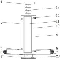 本实用新型公开了一种腹直肌分离量度装置,包括壳体,所述壳体的一侧设置有检修维护组件,所述壳体内壁环绕固定安装有挡环,所述挡环的顶部固定安装有缓冲弹簧。该一种腹直肌分离量度装置,在进行腹直肌测量使用的过程中,可通过人工按压调节杆进行下降,推动推杆发生塑性弯折型变,使推板能够将限位筒内侧的伸缩球囊实时推出,使伸缩球囊能够向与壳体垂直的两侧进行延伸,同时在伸缩球囊延伸过程中带动第二尺板在插接腔室内侧滑动延伸,当伸缩球囊与两侧腹直肌抵触无法延伸时,通过第一尺板与第二尺板上的延伸距离刻度进行观察,即可得到腹直肌的分离距离,代替了人工通过手指进行实时测量,使测量更加方便精确误差较小。