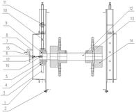 本实用新型公开了一种板链提升机尾轮测速装置,包括尾轮轴、尾轮、配重轮、架体、轴承、导轨、丝杠和密封盖板,尾轮和配重轮设置在尾轮轴上,所述轴承设置在尾轮轴的一端,所述架体设置在轴承一侧,所述导轨设置在的下方所述丝杠竖向设置在轴承上方,所述密封盖板固定在架体上并将轴承罩设在密封盖体的内侧,所述尾轮轴的末端固定设有弹簧连接器,所述密封盖体上设有轴承座,该轴承座上设有位于密封盖体外侧的十字架,弹簧连接器上设有弹簧与十字架连接,所述密封盖体的外侧设有传感器支架,该传感器支架的末端连接有传感器。本实用新型能够大大减少了速度传感器损坏数量,降低了人员频繁更换速度感应器的工作量。