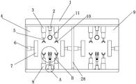 本实用新型公开了一种种鸡按摩取精装置,涉及养殖设备技术领域。该装置本体的一端设置有第一固定箱,装置本体的另一端设置有第二固定箱,第一固定箱和第二固定箱之间设置有隔板,第一固定箱和第二固定箱的内端面和隔板的一端均安装有第二电动伸缩杆,第二电动伸缩杆的一端安装有弧形板,第一固定箱和第二固定箱的一端设置有第一脚部电动伸缩杆组,第一固定箱和第二固定箱的另一端设置有第二脚部电动伸缩杆组,第一脚部电动伸缩杆组之间安装有第一电动伸缩杆,第一电动伸缩杆的一端设置有放置环,本实用新型中通过第一脚部电动伸缩杆组和第二脚部电动伸缩杆组固定种鸡的脚部,通过弧形板固定种鸡的身体,便于限定种鸡的位置,便于后续的取精作业。