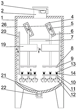 本发明公开了一种用于制备电力用油抗泡剂的均质器,涉及电力器械用品技术领域,包括均质罐,所述均质罐的内部上侧安装有条形块,所述均质罐的外表面安装有驱动机构,驱动机构的输出端与条形块的侧面的中心处相固定连接;条形块转动,通过滑动块和矩形槽的配合作用,使移动杆上下的往复移动,由于磁铁和铁块的磁吸作用,使推料板往复的移动,提高油抗泡剂原料的均质效果;由于不同的第一螺旋弹簧的弹性系数不同,因此不同的推料板移动的范围不同,进一步提高油抗泡剂原料的均质效果;移动杆带动翻料板移动,使油抗泡剂原料被翻动,提高油抗泡剂原料的均质效率;由于固定环带动刷板移动,因此使均质罐不容易粘附原料。