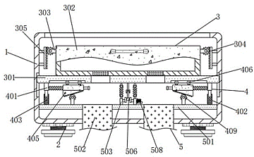 本实用新型公开了一种新型玉米种子选育用筛选装置,包括第一箱体和底座,所述第一箱体的上方开设有开口,所述第一箱体的下表面固接有多个底座,所述第一箱体的内部上方安装有分离装置。该新型玉米种子选育用筛选装置,通过第一箱体、第二箱体、第一横板、第二横板和出料管等结构之间的相互配合,可以通过此装置将种子与杂物进行筛选分离,从而节约了劳动力,通过电机、第三弹簧、凸轮、凹形杆、凸形杆、第一横板和第二箱体等结构之间的相互配合,可以通过电机等带动第二箱体进行震动,从而加速筛选速度,提高了工作效率,通过第二箱体、第一竖板、齿轮和齿牙板等结构之间的相互配合,可以将第二箱体取出并对内部的杂物进行清理。